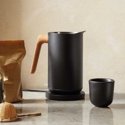 This elegant, black stoneware thermo mug is the very essence of Scandinavian design: minimalist styling and a functional mindset. The thermo mug is double-walled for superb insulation. It keeps drinks hot without burning your fingers. Dishwasher-safe, freezer-proof, ovenproof and microwave-safe.