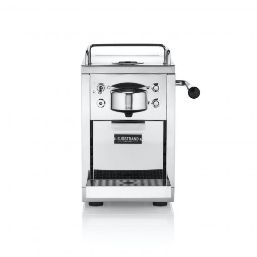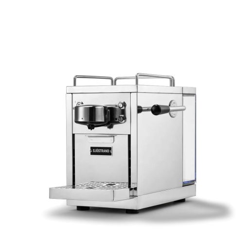 Sjöstrand kaffivélin er stílhrein hylkjavél úr ryðfríu stáli með glansandi króm áferð. Minimalísk skandinavísk hönnun búin þeim eiginleikum að tryggja rétt hitastig og þrýsting sem kallar öll bragðefni kaffisins fram. Sjöstrand vélin virkar best með okkar eigin Sjöstrand hylkjum og þar að auki með öllum öðrum hylkjum sem fylgja Nespresso® kerfinu. Kaffivélin sameinar notagildi og stíl í hinum fullkomna kaffibolla.