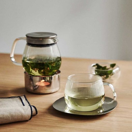 UNITEA integrates harmoniously into any scene. The glass jugs and cups showcase the beauty of teas inside, letting you observe tea leaves as they bloom. While made of glass, the large arched design of the handle lets you grip firmly and comfortably.​ ​