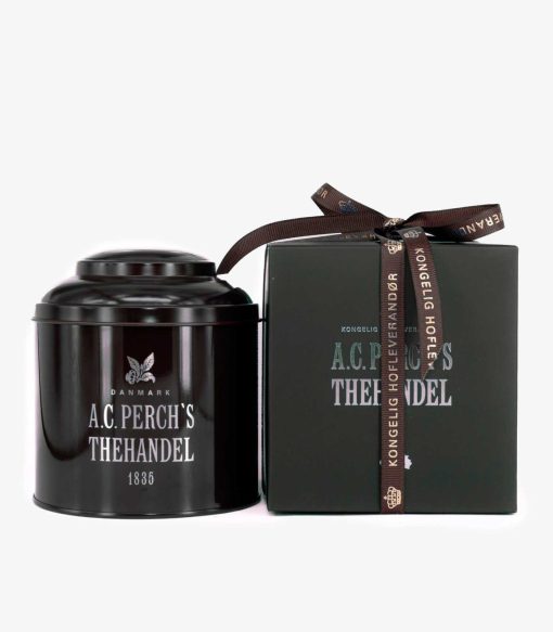 Perch’s organic green Christmas tea packaged in our dark green tin and gift box.