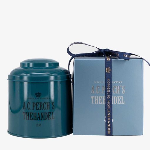 Perch’s Christmas Rooibos Tea, packed in a blue tin.