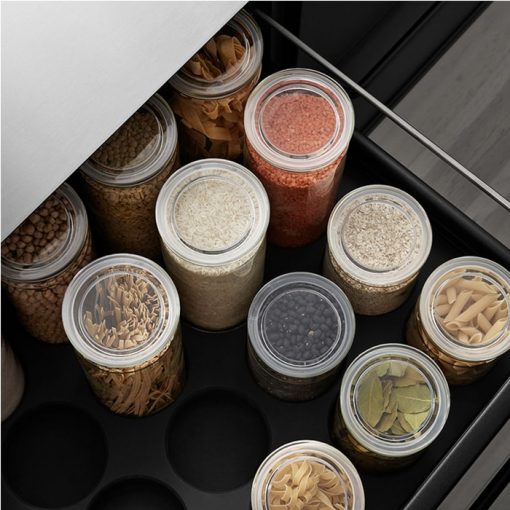 Vipp glass container can store foods such as pasta, lenses, etc. as well as tea and coffee and the container’s rubber ring keeps the contents fresh. Use them in the kitchen to organize your food in drawers and cupboards. You can also create a cozy atmosphere by presenting them to the kitchen table or open shelves.