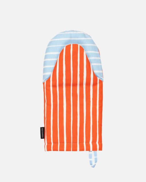 The Piccolo pattern oven mitten is made of organic cotton, and it is printed in Helsinki. The oven mitten features the Piccolo pattern in two different colors, and it has a padded filling and a hanging loop.