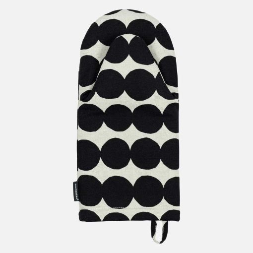 Made from cotton linen mix, this oven mitten r features the Räsymatto pattern. The oven mitten has a padded filling and a hanging loop.