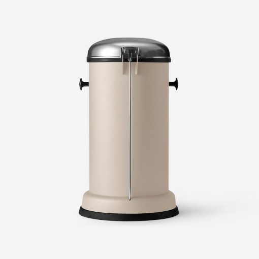 The Vipp15 pedal bin is a medium-sized trash can for the kitchen, office or bathroom. This pedal bin is equipped with a removable inner bin, a lid that ensures air-tight closure, and a damper mechanism that provides smooth closing of the lid. A rubber ring at the base protects floors. For an overview of all available sizes of Vipp bins, click the link below.