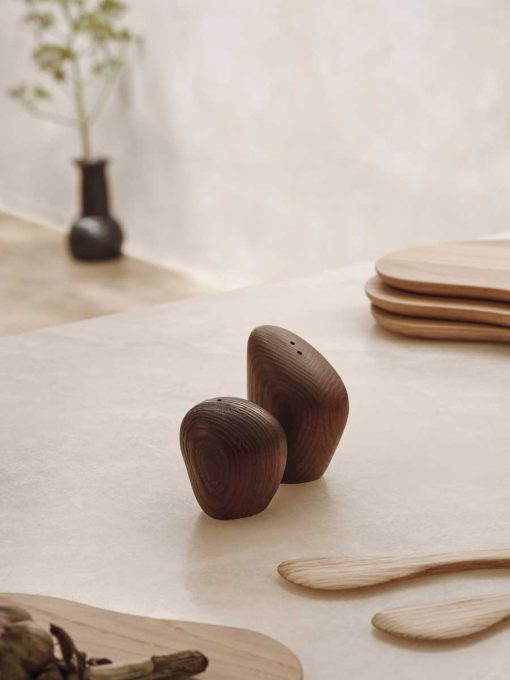 Designed with soft curves and sculpted details, the Cairn Salt and Pepper Shakers infuse your mealtimes with artistic elegance. Skillfully carved from solid FSC™ certified wood with a carbonised finish, the set of shakers features delicate, rounded edges for a distinct look that is sure to elevate your table setting. Boasting a convenient rubber cap on the base for effortless refilling, these shakers offer an elegant and practical way to season your dishes.