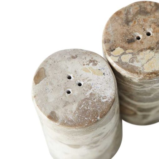 The salt and pepper set is crafted from cream-colored marble. The natural variation in colors and patterns makes each Vita product unique and creates a beautiful contrast with the other materials in your kitchen.