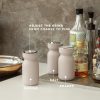 The design is sleek and intelligent: A soft silhouette, neutral colours and contours that sit comfortably in the hand. The wide opening makes it easy to fill the mill, and distinct colour marking makes it easy to tell the salt and pepper apart.