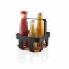 Assemble condiments in a decorative cruet with a streamlined, timeless design. The holder features a practical carrying handle and is ideal as a dining table centrepiece or for taking outdoors for patio barbecues, so that dressings and other condiments are on hand – and easily brought back indoors. The FSC®-certified bamboo provides a natural look, while the matt black finish adds a touch of contemporary elegance.