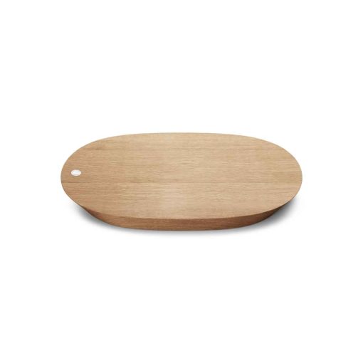Crafted from solid oak wood, this large cutting and serving board joins the Alfredo collection of handsome pieces designed to elevate any kitchen environment. Defined by an elegant oval shape and slanted edges that give the design an original look and make the piece easy to pick and hold, the wooden board features a small stainless steel badge that carries the Georg Jensen logo.