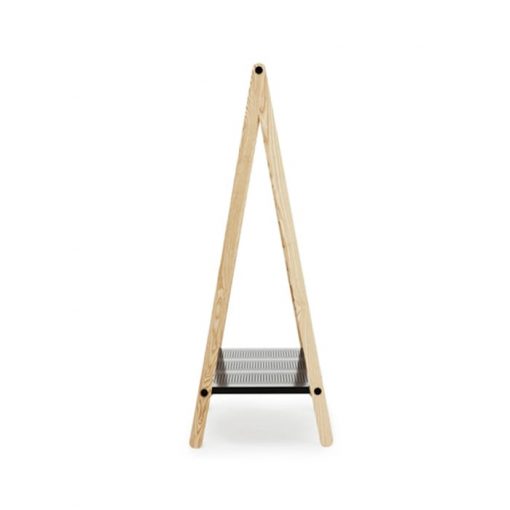 Toj is a clothes rack designed for Normann Copenhagen by Simon Legald to store and at the same time display your clothes, shoes and bags. Toj is characterized by an industrial and simple expression and the idea behind it was to bring the wardrobe out from the cupboard. The frame is in ash wood and the sturdy shelf and hanging rail are made of steel.