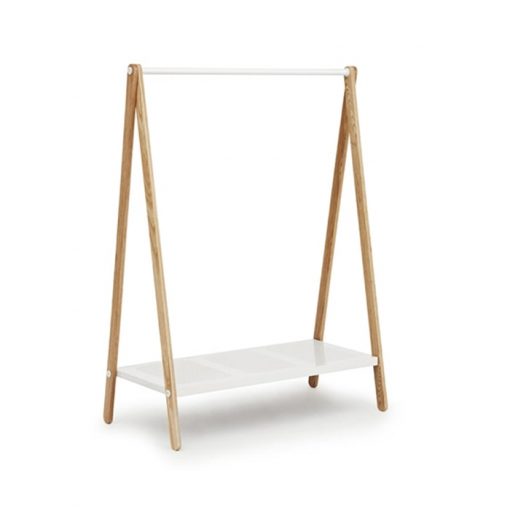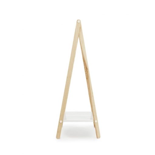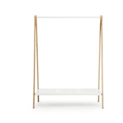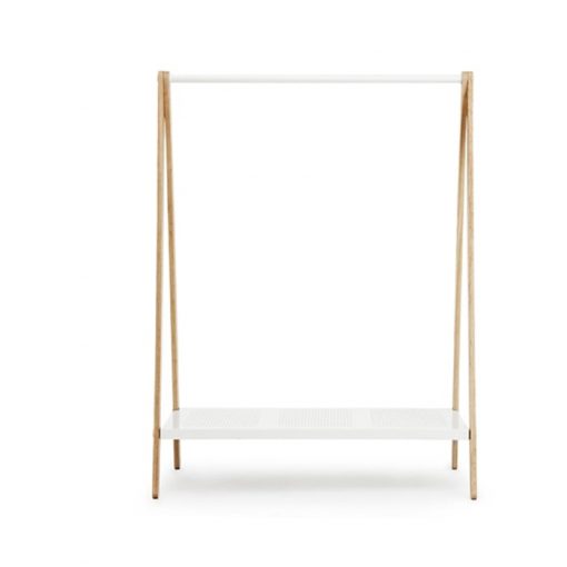 Toj is a clothes rack with an industrial and simple expression. Its function is evident and its simple construction – with a rail, shelf and trusses – provides space for clothes, shoes and bags.