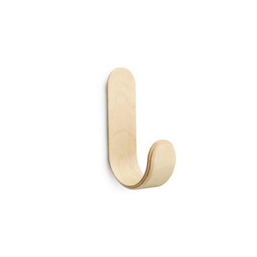 Curve is a wall hook in its most traditional and symbolic form. Shaped like a J, this wooden wall hook has a classic, uncomplicated look. The designer’s clever interpretation of the iconic hook shape makes Curve intuitive in use. Its width and the defined texture of the wood add warmth, humor and personality to the design.