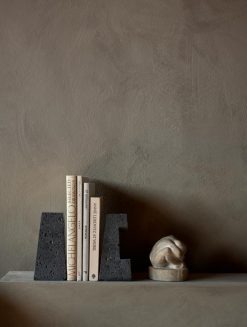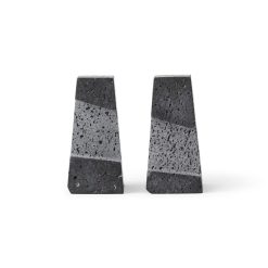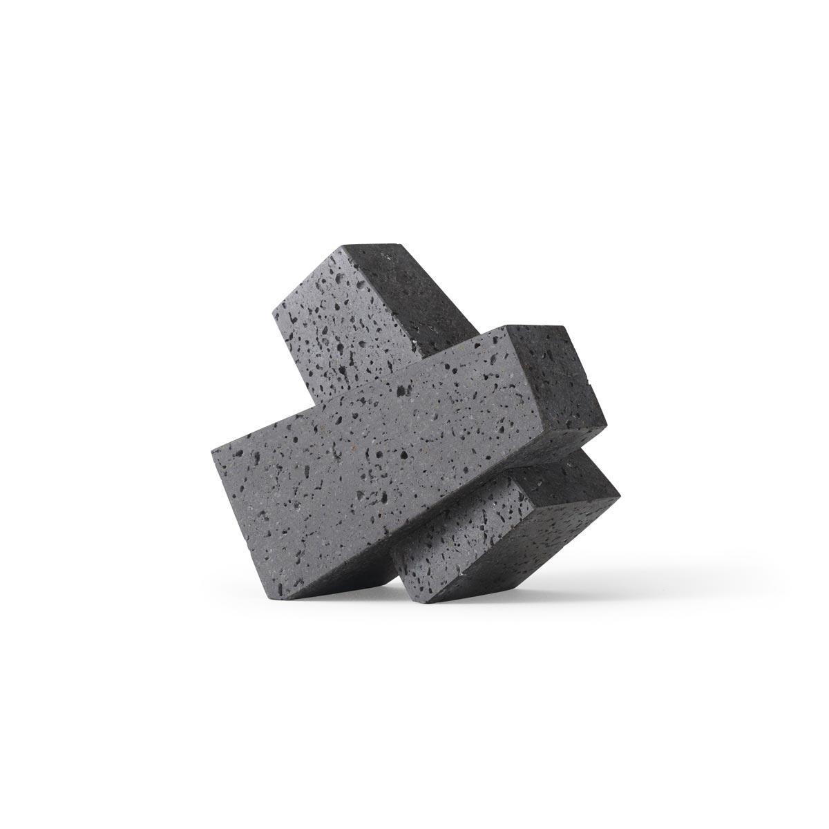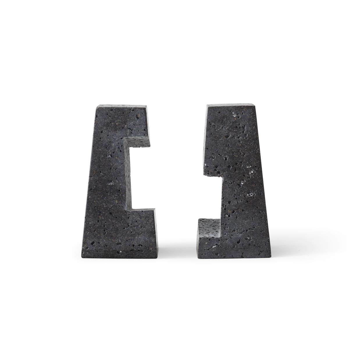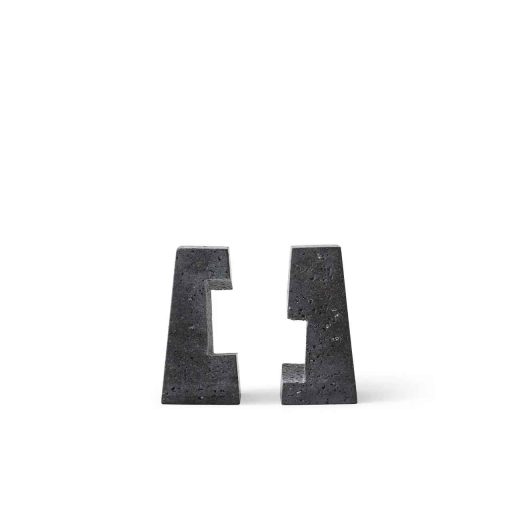 Designed to neatly hold books in place, the abstract forms of the Converge Bookends are shaped from lava stone – a dark and porous material with a textured surface. Use as intended, one at either side of a line of books, or interlock together to create a sculpture that delights with its intriguing shape and touch.