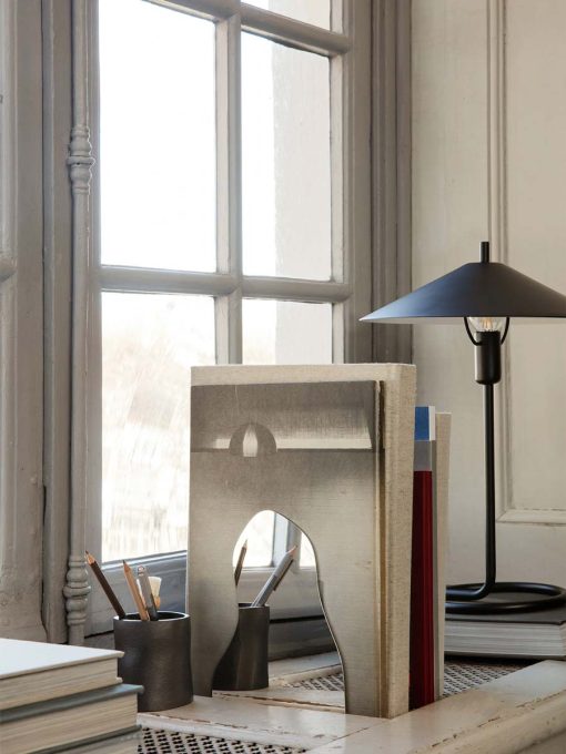 Reminiscent of small, calm puddles, the Pond Bookend brightens up the home library with its fluid shape and mirrored surface. The Pond Bookend is a part of the Pond Collection, where organic forms define the expression of familiar design pieces. Made of a bent stainless steel sheet with a mirror finish, the Pond Bookend subtly assists your books and magazines on the bookshelf.