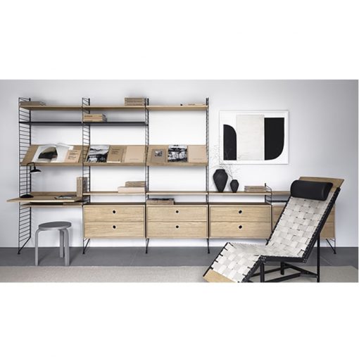By adding a drawer with shelves to your String system solution, you add extra