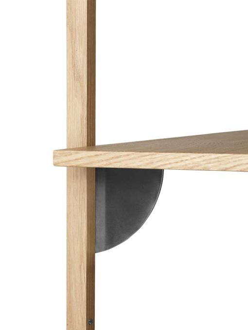 A new and modern take on Mid-century shelving units, Sector is defined by its sturdy simplicity and classic combination of wood and brass – available with natural oak veneer or black stained ash veneer shelves, and polished brass or blackened brass brackets. Available in two sizes, the shelf attaches to a wall with the accompanying solid wood uprights with visible screws. Use it to display favourite objects in a living room or storage jars in a kitchen.