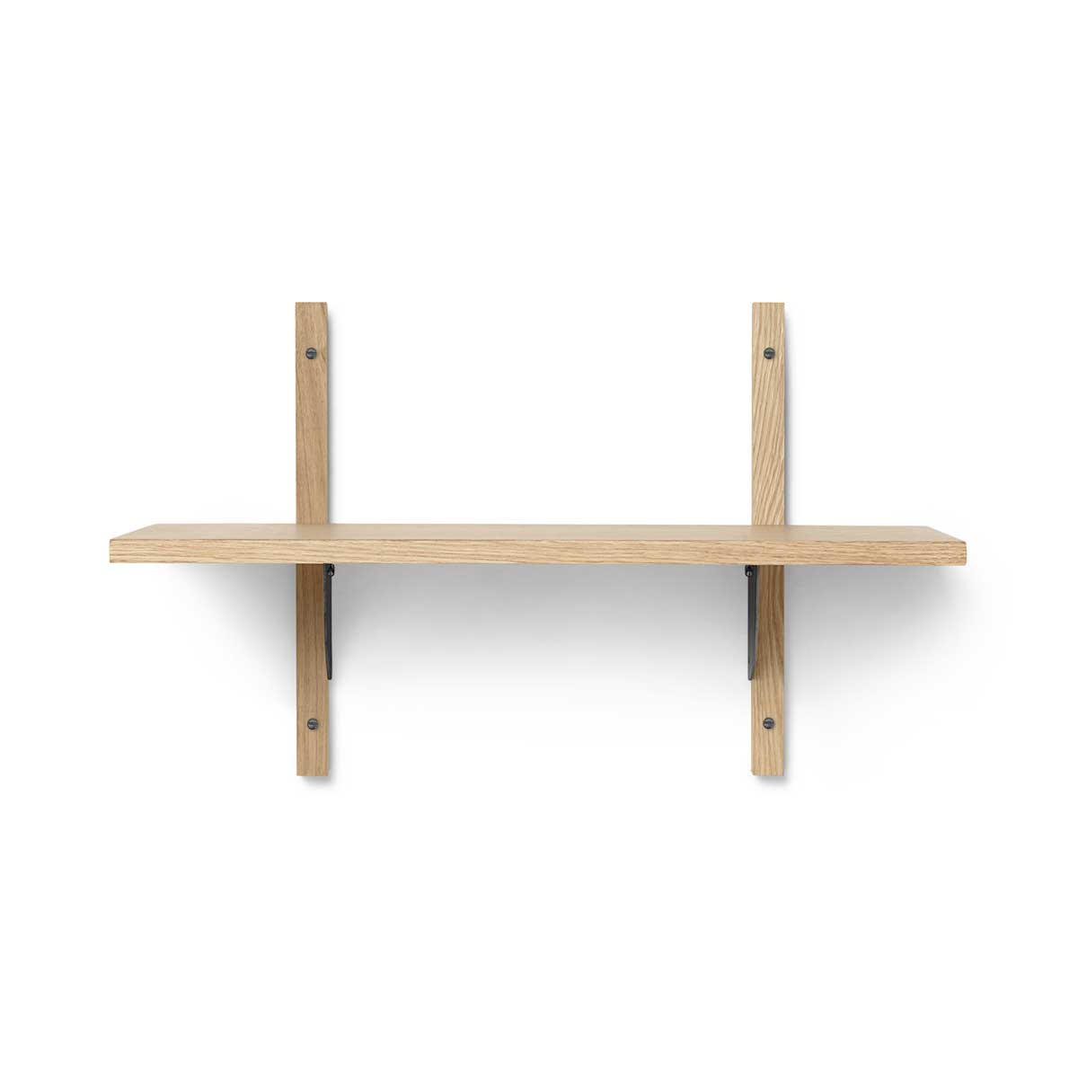 A new and modern take on Mid-century shelving units, Sector is defined by its sturdy simplicity and classic combination of wood and brass – available with natural oak veneer or black stained ash veneer shelves, and polished brass or blackened brass brackets. Available in two sizes, the shelf attaches to a wall with the accompanying solid wood uprights with visible screws. Use it to display favourite objects in a living room or storage jars in a kitchen.