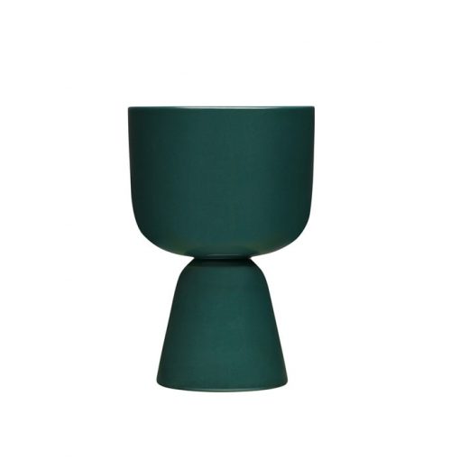 Designer Matti Klenell took inspiration for Nappula from a peculiarly shaped table with ‘swollen’ feet at the Iittala Glass Museum. The Nappula plant pot is a fun play on the signature silhouette with its flowing curved design. A modern Nordic design classic, the smaller size creates maximum impact in any interior. A true inspiration for green displays that allows you to bring a slice of nature inside. Dark green highlights the simple design. Striking alone or grouped. A perfect gift.