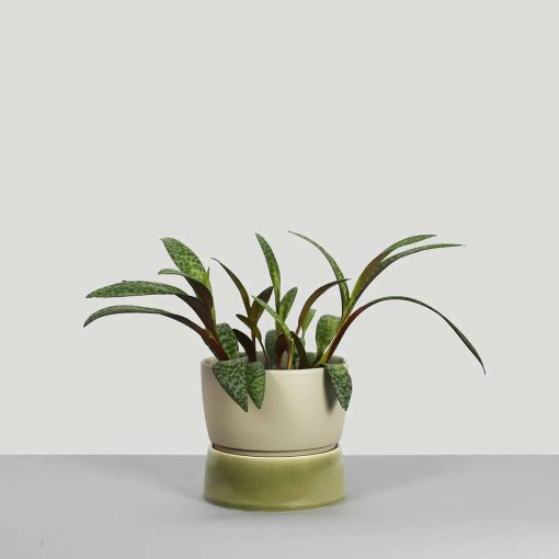 The Two Tone Planter is spacious without appearing large and therefore does not take up much space, which makes it suitable for placement on windowsills and shelves. The shape of the saucer makes the flowerpot stable and suitable for both small and larger plants, which can quietly absorb water through the pot’s drainage hole.