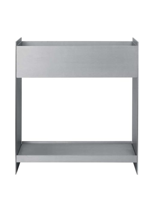 The Lager Plant Box with Shelf merges the Plant Box Series with the Lager Family, offering a sleek, industrial-inspired design crafted from brushed aluminium sheets. An upper tray and lower shelf provide storage for plants, decorative items, and everyday essentials. Ideal for compact spaces, it functions as both an indoor plant stand and a balcony storage solution. The Lager Plant Box with Shelf combines practicality and modern style in a space-saving design that is flat-packed for easy assembly.