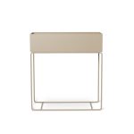 Our plant boxes can be used for decoration all over the house, as temporary storage in the hallway or as a divider to create cosy corners in larger rooms. They’re suitable for flowers, plants, books, toys and magazine – or maybe a little of each. Style them with delicate flowers in fine vases or try green plants in chunky clay pots and watch how the contrasts between the design and the added elements play. There’s an elegant and timeless aesthetic to the plant boxes from ferm LIVING. And the design has a striking and interesting contrast between the rectangular box on top and the thin metal legs. Plant boxes are available in several colours.