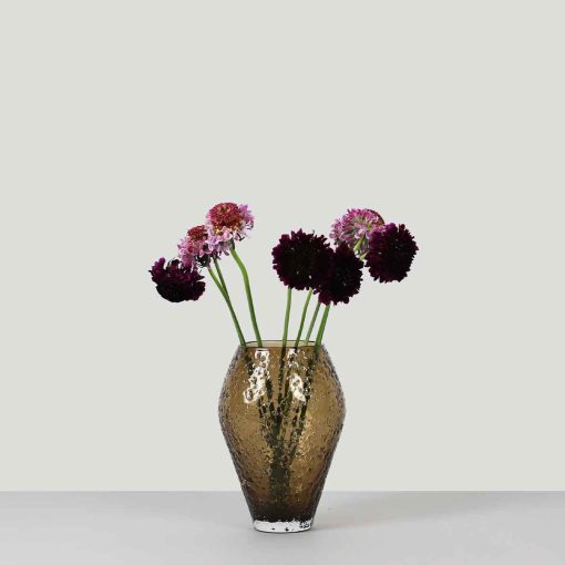 The shape and curves of the Crushed Glass vase are designed with respect for this traditional craft, to ensure that the artistic feature of this method is enhanced and emphasized in this collection of sculptural vases.
