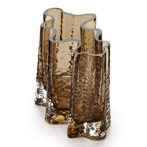 The Gry series is made of mouth blown glass which makes each piece unque. The collection contains tree vases and one tealight, all in three different colors. „Rich is detail, the Gry vases are elegant sculptures that elevates the flowers and water placed inside and plays with the daylight in Its structured surface and color. The candleholder takes the light from the wick lit inside and turns it into a beautiful pattern projected onto the surface on which it stands. The inspiration for the shape comes from the trunk of trees. Starting from the ground you can see the beginning of the roots before turning more round in shape further up. Gry, meaning dawn in Danish, has different word associations, as it is also a play on the word “gro” which means “to grow”.