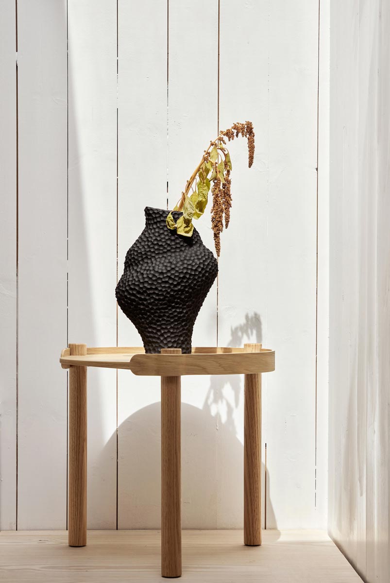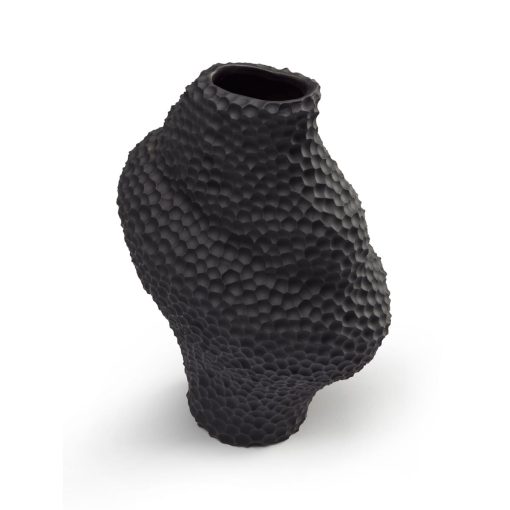 Isla is a beautiful vase with a unique organic shape that makes you think of life under water. The design is typical of Finnish artist Hanna Heino, who draws her inspiration from nature and from the materials she works with. If desired, Isla is a perfect display for your favourite flowers, but the sculptural shape works just as well without anything in it. Isla is available in black and linen colour and in a smaller and a larger version. Hanna has a typical way of working with clay and you can almost feel her fingers in the coral-like structure of the sculpture’s surface.