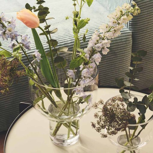 Designer Michael Rem, the creative mind behind the Nebl planter design, has successfully translated the distinctive design language into the Nebl vase. His vision was to see the beautiful and mysterious atmosphere of Nebl become an integral part of our everyday lives. Michael sees Nebl as an artwork, suggesting that it can be used as decoration with or without flowers. The inspiration behind the Nebl collection comes from the German word for „fog.“ The frosted glass covering the vase not only serves a visual effect but also has a practical function by concealing the stems of the flowers. The result is a calm and mysterious expression that invites exploration and contemplation.