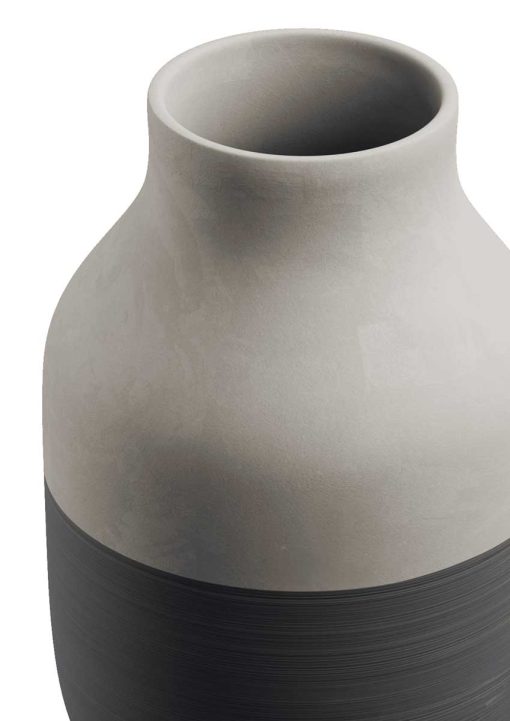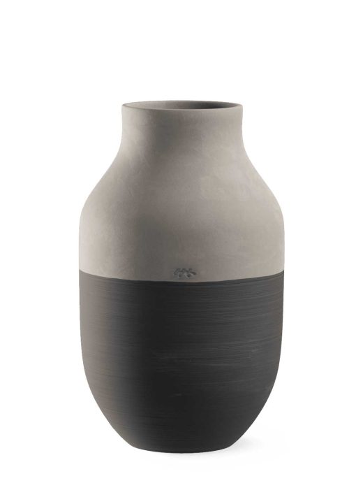 The well-known and beloved Omaggio vase from Kähler is back in a version manufactured from leftover materials from previous productions that would otherwise have gone to waste. Under the title Omaggio Circulare, the new, exciting choice of materials helps to give the popular vase a contemporary and forward-looking perspective with a focus on reducing the environmental impact. The shape is as we know it with the soft, organic lines that dominate the modern Kähler classic created in collaboration with designers Ditte Reckweg and Jelena Schou Nordentoft, who together design under the name Stilleben. They designed the Omaggio vase back in 2007. For the 2024 edition, the duo have applied their innovative approach to design and created the Omaggio Circulare, which has a completely new look with circular materials. Like the other two vases in the series, the large 30-cm vase has a refined two-piece design with a rustic top in a natural grey that has taken its colour from the recycled materials, and a hand-painted anthracite grey that sits beautifully on the lower half of the vase, creating weight and contrast. All the pieces in the Omaggio series are designed to complement one another. Use them to create interesting and decorative displays by combining the new Omaggio Circulare vases with other Omaggio vases, flowerpots and candleholders in different sizes and colours – perhaps some without flowers, plants and candles to allow the design’s sculptural lines to speak for themselves.