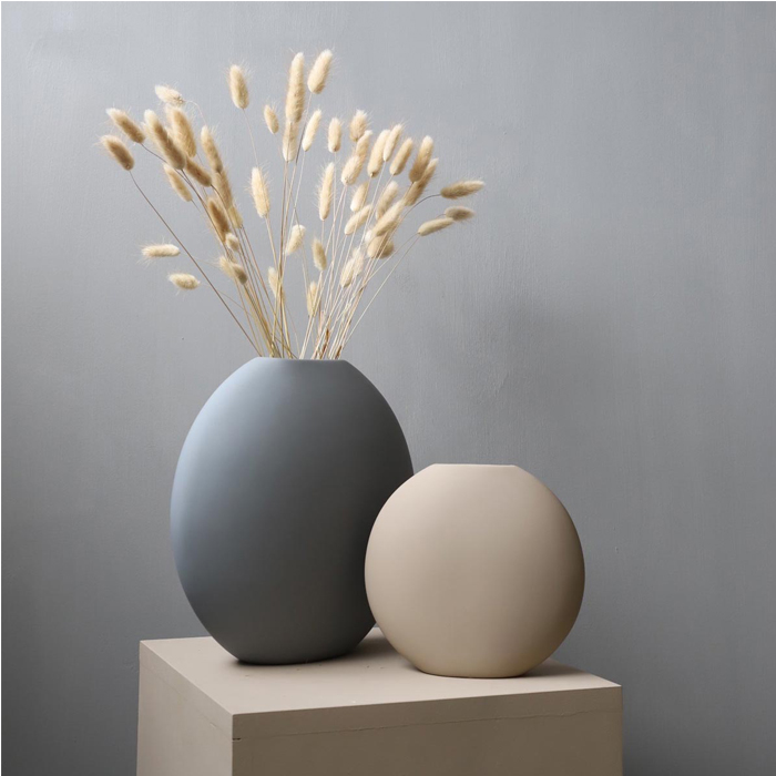 A stylish ceramic vase. The vase is hand made and hand painted which makes every piece unique. The hand painted vase has a matte, soft surface which have become a hallmark for our products.