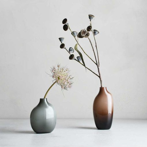 A single-flower vase with playful and organic form, you can enjoy pairing various flowers and plants with SACCO. The asymmetrical shapes create interesting motion, highlighting the lively and delicate expressions of plants. The compact size makes it easy to incorporate into various interior spaces. The subtly varying colors contribute to creating richly inviting spaces with greenery.