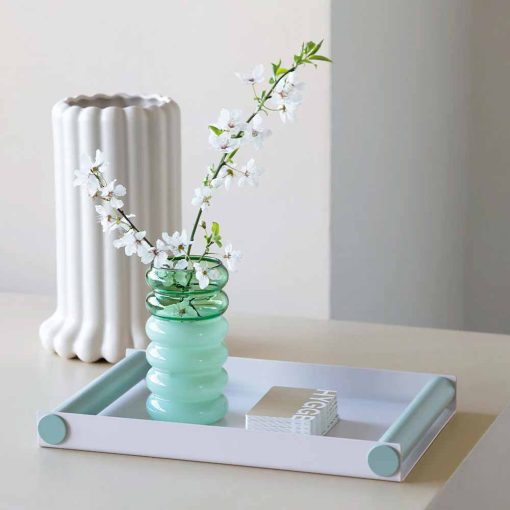 Multifunctional design object that works as a vase and as a candle holder. Use Bubble as a vase to brighten up the home in the spring and summertime by adding a bouquet of flowers. Turn the vase around in the fall and wintertime and create a cosy atmosphere by adding a white or coloured candle to the candle holder. Designed in coloured borosilicate glass – Pretty curves and unique colour combinations in a beautiful decoration for the home!