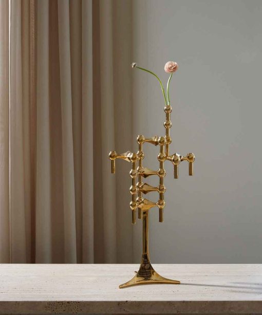 It is designed as a natural continuance of the characteristic STOFF Nagel expression and can be combined with both the candle holders, the bowl, and the stand. The vase adds an extra dimension to the classic design and allows you to include a colourful flower decoration of your choice to your sculpture.