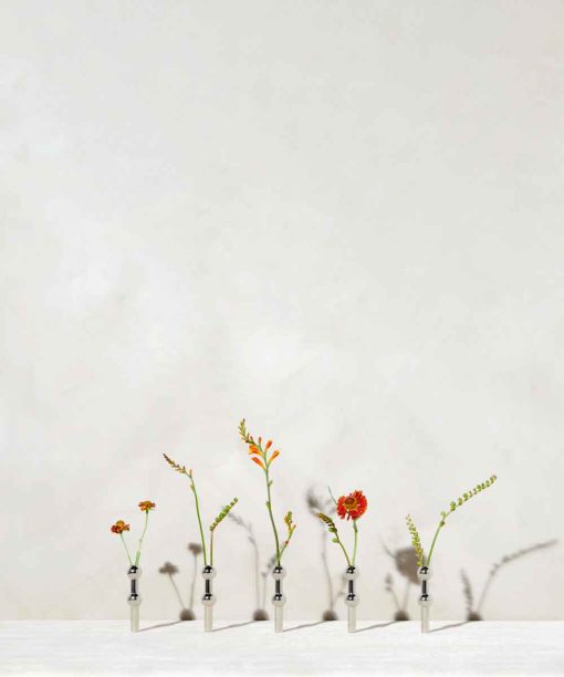 It is designed as a natural continuance of the characteristic STOFF Nagel expression and can be combined with both the candle holders, the bowl, and the stand. The vase adds an extra dimension to the classic design and allows you to include a colourful flower decoration of your choice to your sculpture.