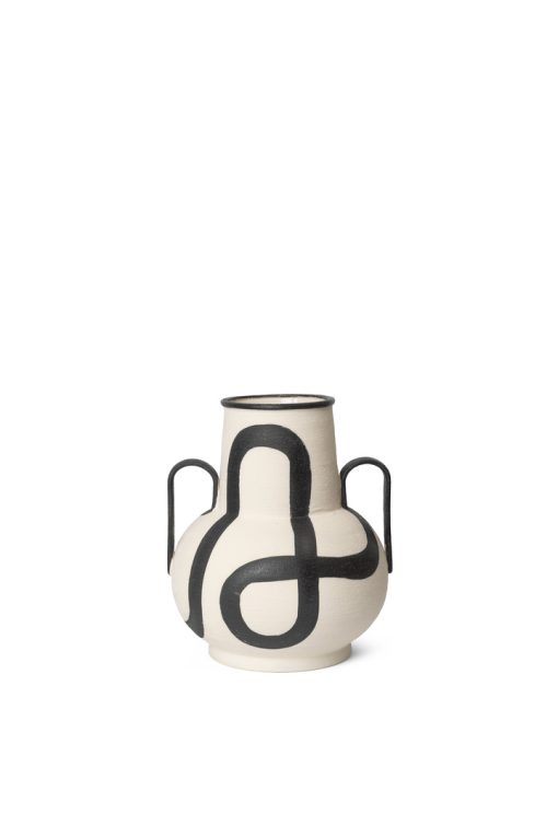 The name ‘Trace’ aptly describes the hand painted line that gracefully adorns the body of this vase. Resembling a meandering path, the line creates a captivating graphic imagery that beautifully contrasts the vase’s curvaceous form. The handles seamlessly extend from the path, infusing the line with a sense of movement as it gracefully transitions into a three-dimensional shape. The generous size of the vase makes it ideal for making a bold statement as a floor vase or for showcasing flowers on a tabletop.