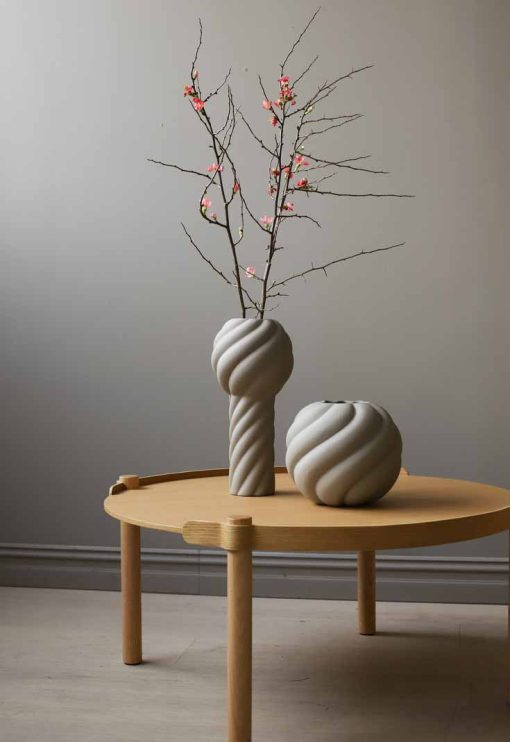 Twist Ball vase with its playful appearance is a further development of our classic “Ball vase”. The waveforms give a soft and interesting expression. Twist Ball vase comes in three colors. The vase can be combined with Ball vase, Pillar vases.