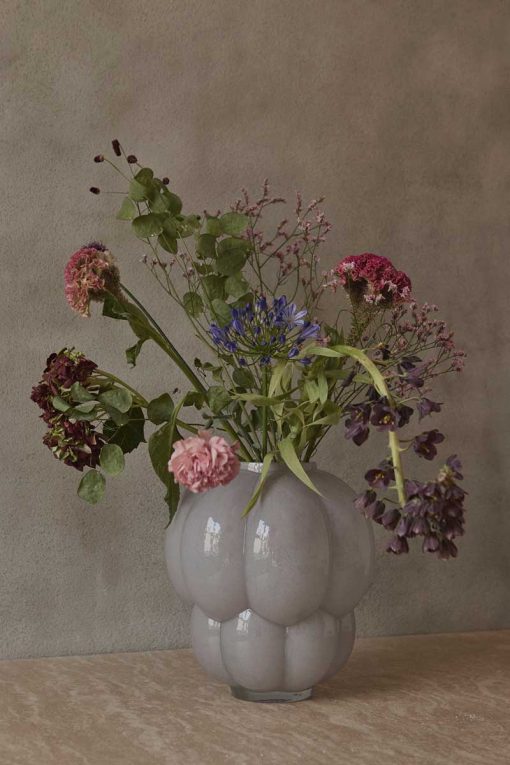 UVA is the essence of voluminous elegance. The shape and meaning creates the finest relation, as UVA is the word for grape. Like clusters on a vine plant that turns into wonderful wine, UVA glass vase embodies joy and renewal in the most stunning and exquisite way. When embracing the mighty UVA glass vase, you will find that the dynamic design with its vibrant curves truly is a masterpiece that stands gorgeously on its own. The vase is made of mouth blown glass, where the nature of the material and mouth blowing technique means that each UVA glass vase is beautifully unique and stands as forever-pieces in your home. Available in different colours and sizes.