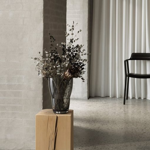 The Vipp vase is a decorative item for the living room. This translucent, mouth-blown glass vase features a distinct smoke-coloured finish designed in collaboration with ceramicist Annemette Kissow.