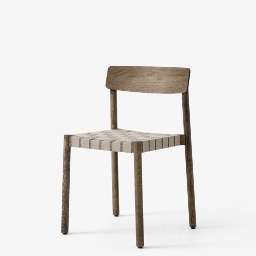 Named after the Betty Nansen theatre in Copenhagen, this stackable chair design is available in three versions: one with a linen webbed seat, one with a solid wooden seat and one with an upholstered leather seat. Betty also comes in a variety of colour combinations and materialities, making it a simple yet profoundly versatile companion to kitchen, living and dining spaces alike.