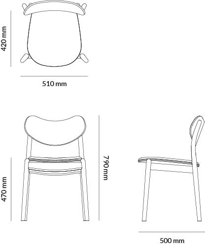 H 79 cm / W 51 cm / D 50 cm / SH 47 cm