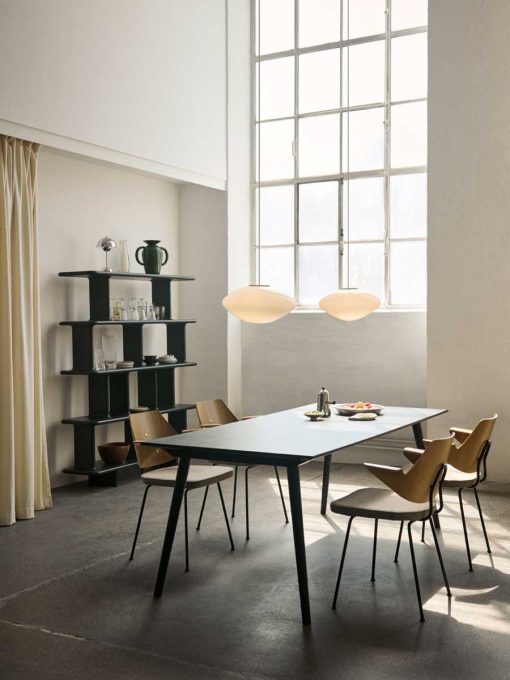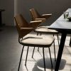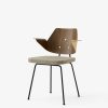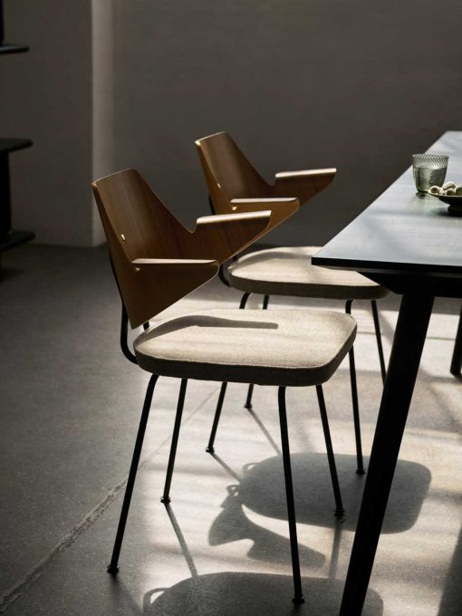 Originally created to seat visitors in the dining rooms of the Royal Festival Hall, the RFH Armchair by Robin Day is charactericed by the softly curved backrest and outwardly reaching arms. Rich in materiality, the chair’s striking form is achieved through a process of form-press moulding layers of beech and walnut veneer.