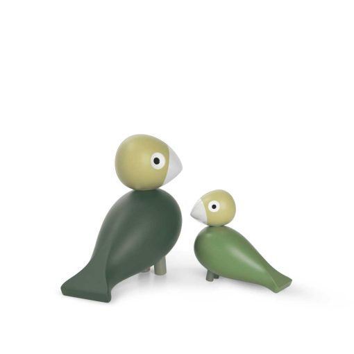 To celebrate your life events, a reminder of all the happy moments in everyday life, and the special bond between parents and children. With the pair of Liv & Lykke birds in the iconic Kay Bojesen design, the wings spread out for all who care for and cherish each other. The bird pair is made from FSC® certified beechwood and consists of one large and one small bird, which you can choose to use together or separately to express your unique story, exactly where you are in your life. The large bird comes in a subdued dark green and, at 10 cm in height, is slightly smaller than the others in Kay Bojesen’s popular series of songbirds, while the small bird at 6 cm, with a body in a warmer green-yellow, is the same size – and just as cute – as the birds you know from the Kay Bojesen mobile in the Babies series with birds and balls in wood, painted in various colours.