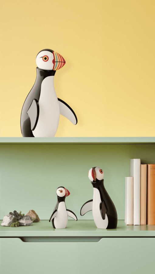 A smile on its beak for 70 years. With its colourful beak and friendly expression, the Puffin is a bird you’ll love at first sight. It’s almost too cute to be real, and it’s easy to see why Kay Bojesen was inspired by this charming bird from the cold north when he created his famous and beloved Puffin back in 1954. Naturally, we wanted to mark the 70th anniversary properly – with an anniversary edition, produced only in 2024 and in a new mini size that makes it even more charming (if that’s even possible). The Puffin has a height of 13.5 cm. It’s made using FSC®-certified beech wood and painted with great precision and care so that the body, beak and eyes have that authentic friendly look that the puffin is known for. It was the theatre painter Svend Rasmussen who was responsible for the bird’s lovely colours and wonderful beak, and his innocent and minimalist lines and use of colours perfectly match Kay Bojesen’s playful and imaginative world. Whatever its size, the Puffin has a very special appeal to both children and adults and is a great gift idea for christenings, birthdays, graduation gifts, anniversaries or weddings. This is a classic that follows you throughout your life – from your childhood bedroom to a beloved design icon in your own home.