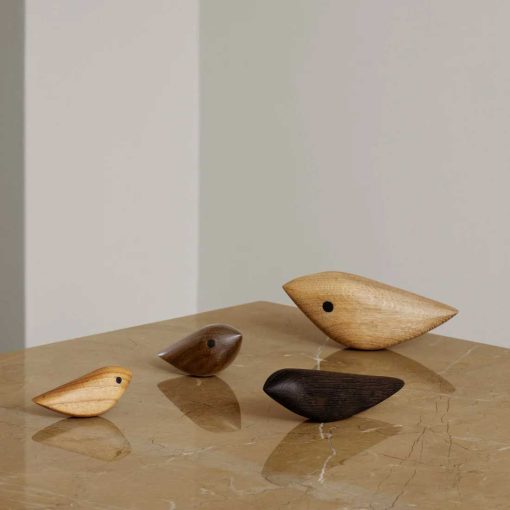 Unique turning birds in wood, designed in the 50s by the Danish furniture architect and a true artist in processing wood, Jacob Hermann, and now put into production by Warm Nordic. The Danish-produced Twirling Birds are well suited as a personal gift that will bring joy across generations. The twirling birds each have their own personality, which is determined by the grain and color of the wood, and can be used both for decoration and for play, where a Twirling Bird is spun around easily like an elegant version of ‘The one the bottle neck points to’. This is how the artist himself used them. As a nice detail, the eye itself on some of the hand-polished Twirling Birds is also made from a small piece of wood. The fine birds come in a beautiful box, which also makes them perfect as a sweet gift for someone you care about. Choose from several different models and exclusive types of wood in oak, smoked oak and solid teak.