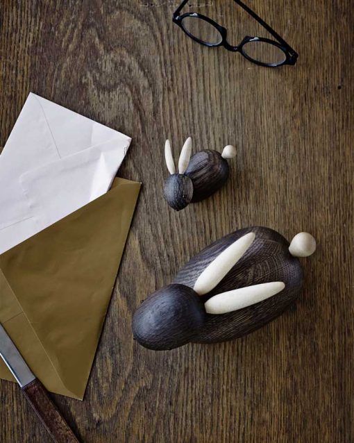 The Danish nature was the guiding inspiration when Th. Skjøde Knudsen designed his characteristic wooden animals. Originally from 1958, the Skjøde rabbit holds fine details that remind us of the charming personality embodied by this charismatic forest friend.