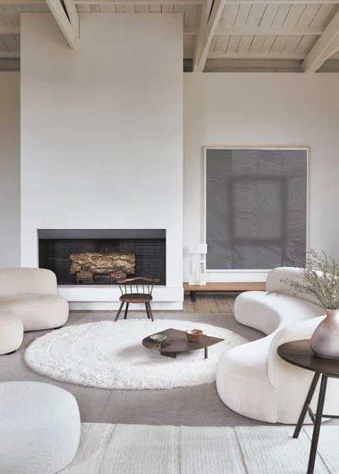 Its design is outlined in concentric rings of increasing pile lengths that go from low pile, in the center, to a plush 5-cm-long pile at the edges, providing an elegant textured surface for a stylish and cozy decor.