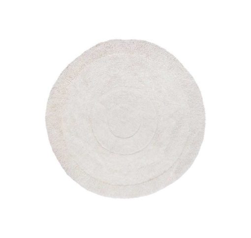 A stunning, super sized, round rug, made in soft undyed white wool, sourced from Middle Eastern sheep and mixed with New Zealand wool by 20%, tufted over a natural cotton canvas base. Available in a single size and color.