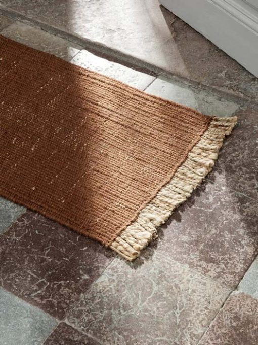 Handwoven in a mix of PET yarn from recycled post-consumer plastic and jute, the Block Mat is a reliable friend in busy homes. Place the mat at every entrance or hallway that needs some extra floor protection. Available in various colours and with raw fringes along two sides, the Block Mat is a lovely addition to any household.